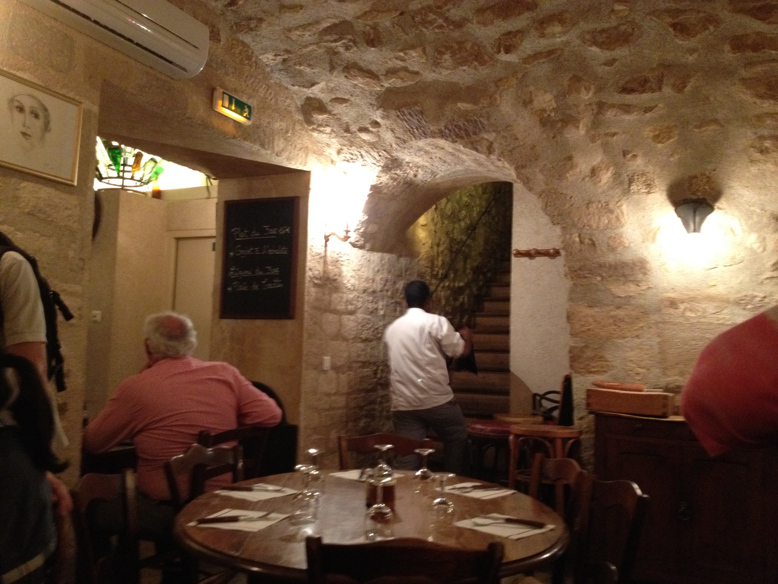 The appetizer Robert ordered was undercooked. It was lobster, and he couldn’t even cut it with the steak knife he’d been given. The waiter was kind enough to delete it from the bill. I know the steak temperatures are different in France than the U.S. Perhaps that was the state in which they wanted the lobster to be? Thus, the steak knife? Not sure, but it just didn’t seem right and was certainly not what we are used to. (Like we eat lobster on a regular basis. Ha.)