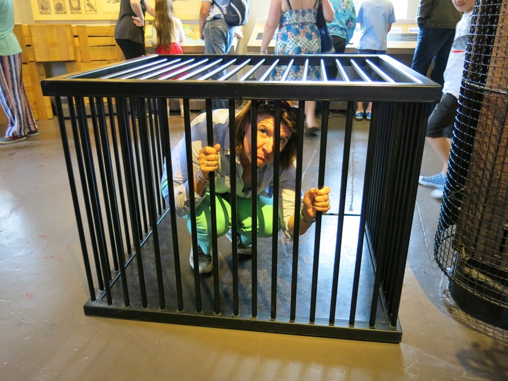 We visited the Torture chamber, the Salt Tower and the gift shop, of course. Amy was a game hostess and posed for us in several of the displays.