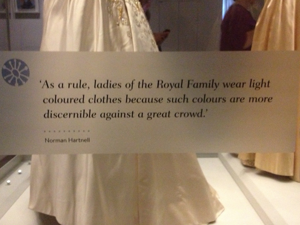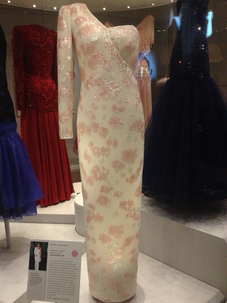 I’m proud to say we once again braved the Tube and ended up exactly where we were going. Kensington Palace. This was the childhood home of Queen Victoria and the home of William and Mary. Currently, it also plays host to the Fashion Rules exhibit, which traces the history of the clothing worn by Queen Elizabeth II, Princess Margaret and Princess Diana.
